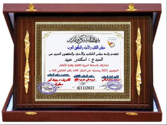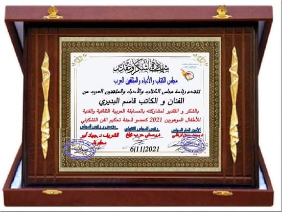 الشريف د- جهاد ابومحفوظ رئيس ومؤسس مجلس الكتاب والأدباء والمثقفين العرب يكرم رؤساء وأعضاء لجان ومشرف ورئيس المسابقة الثقافية الفنية للاطفال الموهوبين العرب 2021