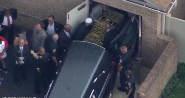 وقبل جنازة الملاكم الأسطورة، الذي توفي عن عمر ناهز 74 عاما الجمعة الماضي، أقام سكان مدينته حفل تأبين شارك فيه مسلمون ومسيحيون، في مركز لويفيل الإسلامي.