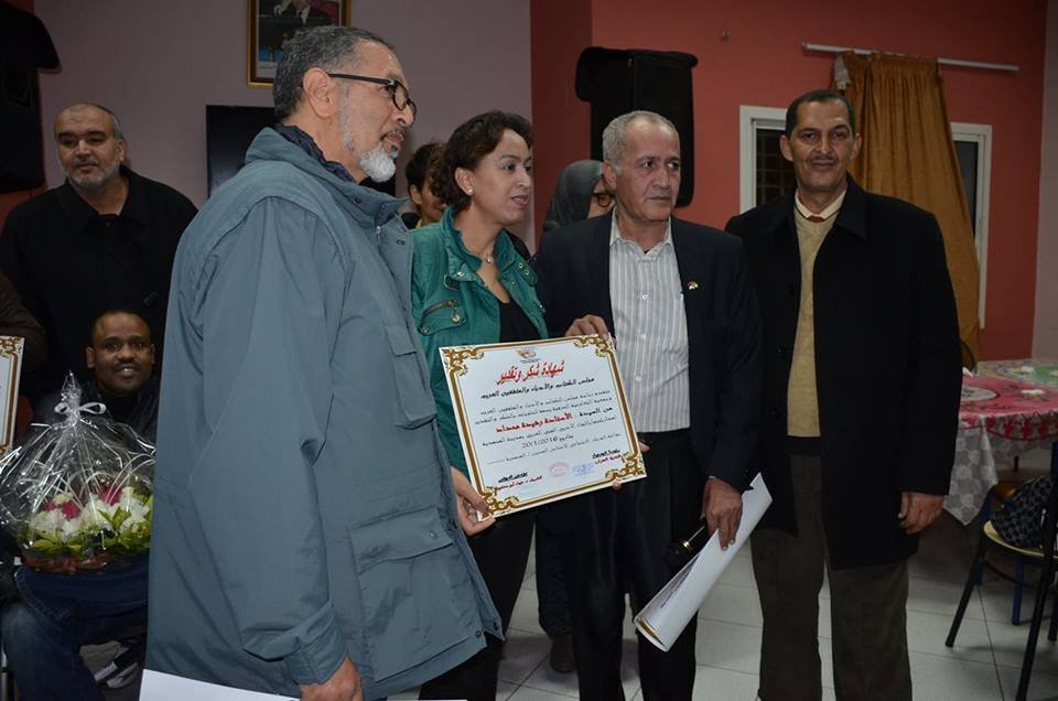 اقام مجلس الكتاب والادباء والمثقفين العرب بالتنسيق مع الجمعية التعاونية الحرفية ” بسمة” لقاء أدبياً فنياً يوم السبت الماضي 20/1/2018 بقاعة المركز الاجتماعي لكبار المسنين بمدينة المحمدية شارك فيه شعراء وفنانون واعلاميون من المغرب والعراق وفلسطين والاردن وتم في اللقاء توقيع ديوان شعر “ليالي عشق شهرزاد” للدكتور الشاعر محمد ازلماط وتكريم الاعلامي المغربي خالد قريش والاعلامي المغربي محسن الهاجري والزجال خالد منيري