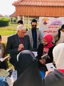 قام مجلس الكتاب والادباء والمثقفين العرب بمشاركة ومساهمة بالتبرع بعدد من الكتب الى معرض الكتاب الذي اقامته جامعة واسط على حدائق كلية الطب من قبل فريق جامعة واسط للتعايش السلمي والعمل التطوعي الذي يراسه الاستاذ المعيد فيصل الزويني والذي ضم مختلف الكتب التي تبرع الادباءوالكتاب ومكتبات المحافظة عقد المعرض تحت شعار يلا نقرأ واقرأ عشرة دقائق وخذ كتاب مجاناً وقد استقبل نائب رئيس المجلس من قبل رعاة المعرض وتم التوضيح للحضور من الطلاب والطالبات تعريف لمجلس الكتاب والادباء والمثقفين العرب ومهماته أفتتح المعرض من قبل الدكتور مازن الحسني رئيس جامعة واسط والدكتور نصير المالكي عميد كلية الطب وجمع من اساتذة جامعة واسط ومثقفي وكتاب واسط اضافة الى الكثير من الناشطين والاعلاميين والقنوات الفضائية القيت كلمة من قبل أحد اعضاء الفريق الذي قام بهذا النشاط الثقافي المميز وضح بها جهود الفريق وشكر كل المساهمين والحضور وقد قمت بحفل توقيع ببعض اصدارتي في الحفل واهديت الكثيرمنها الى طلاب وطالبات الجامعة من الذين حضروا حفل الاحتفال