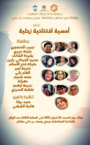 مساء السبت 25 فبراير 2023 على الساعة الثالثة بعد الزوال ، حفل افتتاح إتحاد زجالات المغرب ، المنظم بشراكة مع مجلس مقاطعة سيدي يوسف بن علي بفضاء المكتبة الوسائطية.