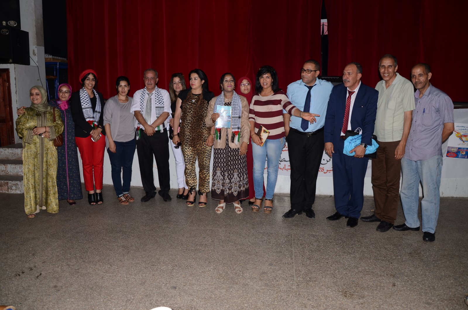 صورمن لقاء ادبي وفني في امسية شعرية بدعوة من الشريف د جهاد ابو محفوظ رئيس مجلس الكتاب والادباء المثقفين العرب والهيئة الوطنية لللإسعاف والإنقاد والذي شارك فيه تلة من الشعراء من المغرب وفلسطين والعراق وكدا فنانين من خيرة الشباب بمدينة المحمدية وكانت مشاركة المتميزة لكل من الشاعر خالد محمد النبالي والدكتور الشاعر عامر ابراهيم والدكتورة أمينة رضوان والشاعر الزجال منيري خالد ورئيس جهة الدار بيضاء السطات الأستاذ عماري محمد والفنانة المغربية هناء كانون التي ادت اغنية وطنية جديدة من كلمات الشريف الدكتور جهاد ابومحفوظ كما مر هذا الحفل في أجواء رائعة راقت استحسان الحضور