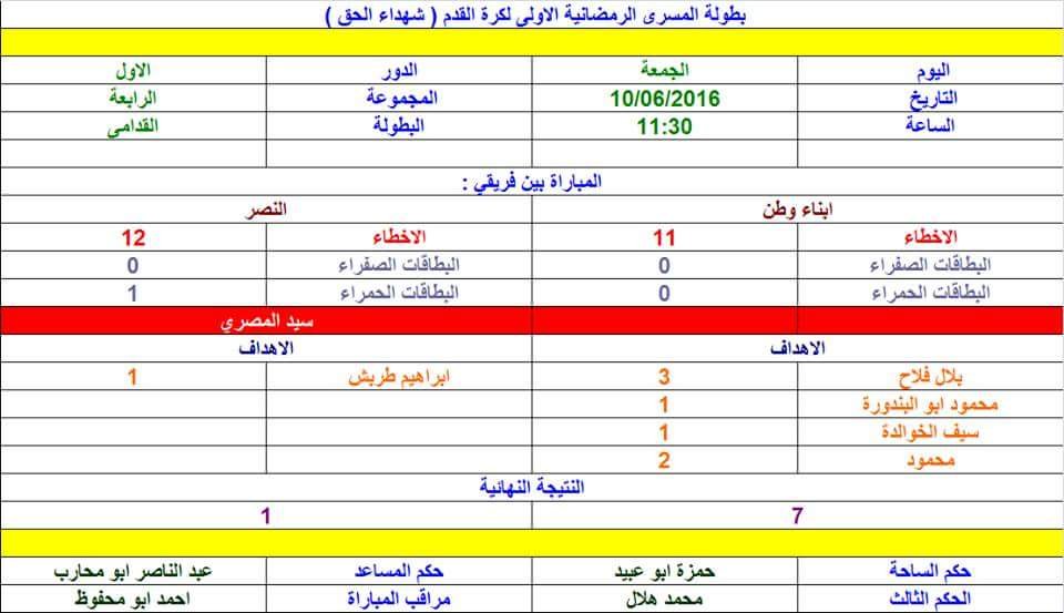 بطولة المسرى الرمضانية الاولى لكرة القدم ( بطولة شهداء الحق )
