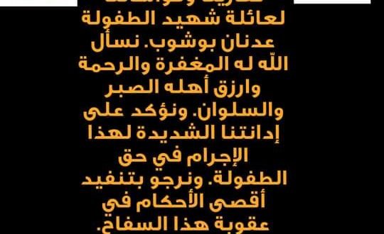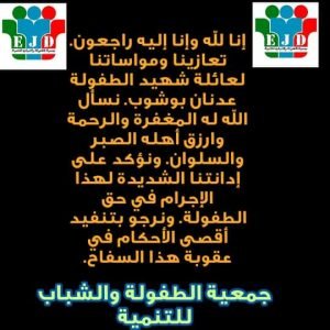 تعزيةجمعية الطفولة والشباب للتنمية نشرت بواسطة: Samya altarabehe في أخبار المجلس 13 سبتمبر، 2020 0 651 زيارة 2020-09-13 Samya altarabehe tweet