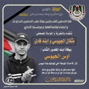 ببالغ الأسى و الحزن و بقلوب راضية بقضاء الله وقدره تلقينا نبأ وفاة المغفور له اوس مثقال الجيوسي . ولا يسعني إلاّ أن أتقدم بواجب العزاء للأخ الحبيب الشّاعر والأعلامي مثقال الجيوسي