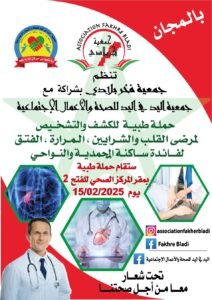 تنظم جمعية فخر بلادي بشراكة مع جمعية اليد في اليد للصحة والأعمال الإجتماعية نشرت بواسطة: Samya altarabehe في طب وصحة 14 فبراير، 2025 0 554 زيارة تنظم جمعية فخر بلادي بشراكة مع جمعية اليد في اليد للصحة العالمية 2025-02-14 Samya altarabehe tweet