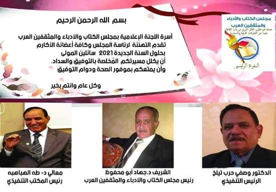 تهنئة اللجنة الإعلامية لرئاسة مجلس الكتاب والادباء والمثقفين العرب نشرت بواسطة: Samya altarabehe في آخر الأخبار 30 ديسمبر، 2020 0 524 زيارة أسرة اللجنة الإعلامية بمجلس الكتاب والادباء والمثقفين العرب تقدم أعطر التهاني 2020-12-30 Samya altarabehe tweet