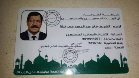 بأسمى آيات التهنئة بمناسبة انضمامه الى “رابطة الشرفاء آل البيت الحسنيين والحسينيين” وحصوله على بطاقة العضوية..