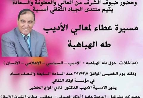 منتدى الجياد الثقافي الاردني يقيم حفل تكريم لعضو المكتب التنفيذي لمجلس الكتاب والادباء والمثقفين العربد.طه الهباهبه