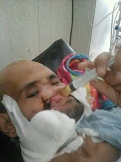 وهذا حقه اننا نوصل صوته للمسؤلين واصحاب القلوب الرحيمه لمعالجته وتخفيف معناته مع فهو طريح الفراش يشرب وياكل عن طريق سرنجه بعد حادثه اطلاق خرطوش عليه من خفير الثلاجه التى يعمل بها نعم خرطوش فى الوجه وليس فى مكان اخر نحن لا يهمنا لماذا اطلق عليه الخرطوش ولماذا فى وجه