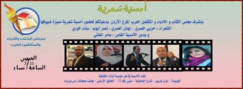 دعوة حضور امسية شعرية /بمجلس الكتاب والادباء والمثقفين العرب /فرع الاردن نشرت بواسطة: salma alzoy في أخبار المجلس 2 نوفمبر، 2016 0 879 زيارة 2016-11-02 salma alzoy tweet