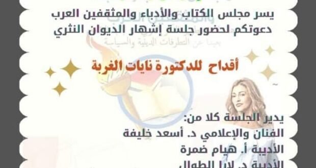 دعوة عامة، من مجلس الكتاب والادباء والمثقفين العرب نشرت بواسطة: zineb hassari في آخر الأخبار, أخبار المجلس 1 ديسمبر، 2021 0 867 زيارة بسم الله الرحمن الرحيم دعوة عامة 2021-12-01 zineb hassari tweet