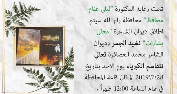 رام الله سيتم اطلاق ديوان الشاعرة “معالي