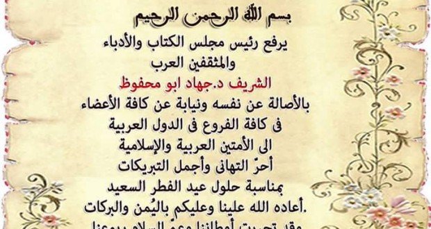 رئيس مجلس الكتاب والادباء والمثقفين العرب – يهنئ الامتين العربية والاسلامية بعيد الفطر السعيد نشرت بواسطة: adel alkhateb في آخر الأخبار, مناسبات 3 يوليو، 2016 0 1,648 زيارة 2016-07-03 adel alkhateb tweet