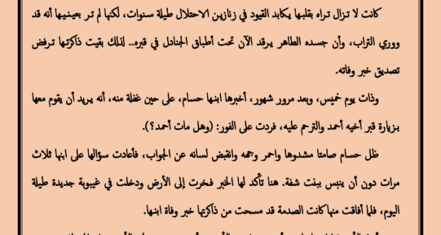 زنابق من دموع .. قصه قصيره بقلم صفاء محمد قره نشرت بواسطة: Samya altarabehe في آخر الأخبار 21 ديسمبر، 2022 0 825 زيارة 2022-12-21 Samya altarabehe tweet