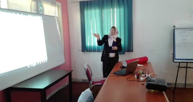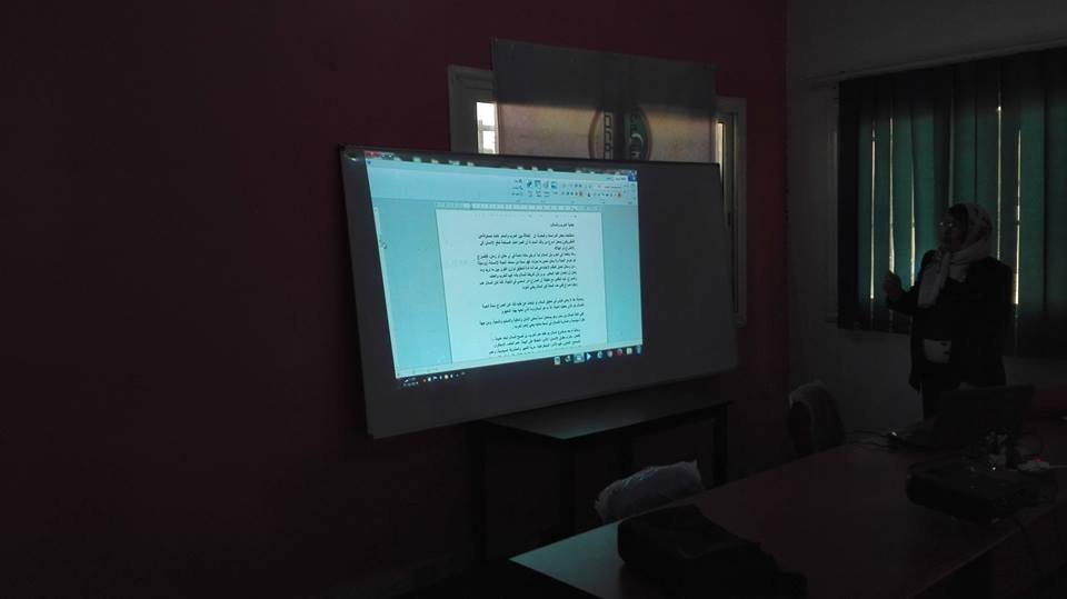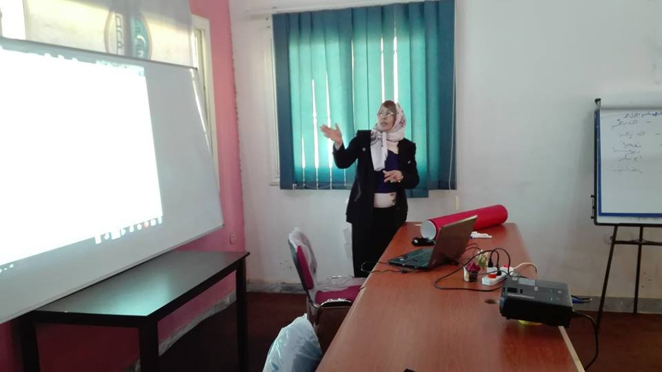عضوة المكتب التنفيذي لمجلس الكتاب والادباء والمثقفين العرب وممثلة مجلس الكتاب بليبيا …… تقوم بمحاضرة توعية للمرأة ومؤسسات المجتمع