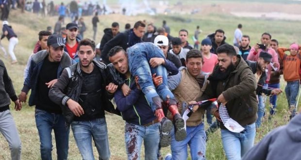 و قوات الاحتلال الإسرائيلي أطلقوا وابلا من الرصاص الحي، وقنابل الغاز المسيل للدموع تجاه المواطنين على الشريط الحدودي شرق قطاع غزة، ما أدى لإصابة الآلاف بالرصاص الحي والاختناق بالغاز المدمع، بينهم طواقم الصحفيين والإسعاف المنتشرة على طول الشريط الحدودي.