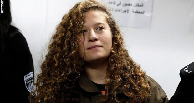 على الفتاة الفلسطينية عهد التميمي بالسجن لمدة 8 أشهر، بالإضافة إلى 8 أشهر أخرى مع وقف التنفيذ وغرامة قدرها 5 آلاف شيكل إسرائيلي (1440 دولارا)
