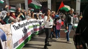 انطلقت اليوم الاحد الموافق 9/2/2020 مسيرة حاشدة بالرباط عاصمة المملكة المغربية تندد وترفض صفقة السلام المعروفة ” بصفقة القرن ” وانطلقت هذة المسيرة من باب الاحد بالرباط مرورا بشارع محمد الخامس وصولا الى مقر البرلمان