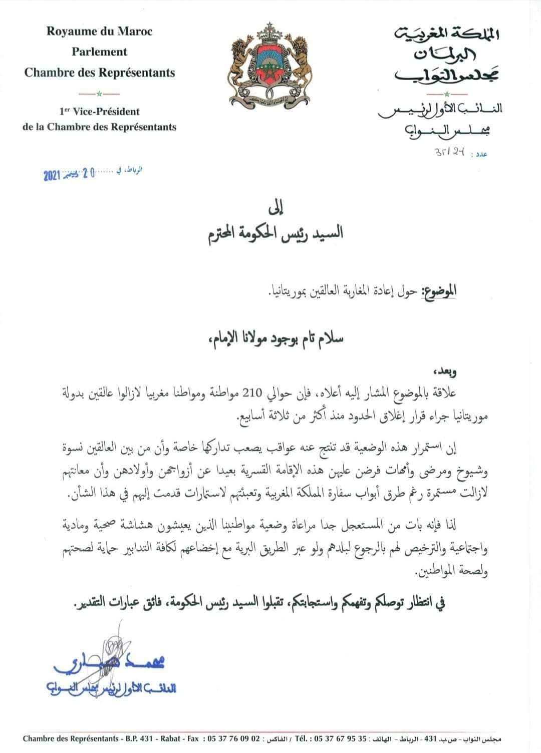 السيد الوزير المحترمكما تدخلتم لفسح المجال لدول أخرى من أجل تسهيل وتوفير الرحلات لرجوع من كانوا عالقين، نتمنى صادقين أن تعم هذه البادرة على الجميع وتصدر منكم تعليمات من شأنها تسهيل العبور للمنظمة العالمية للسلام واندماج الصحراويين المغاربة