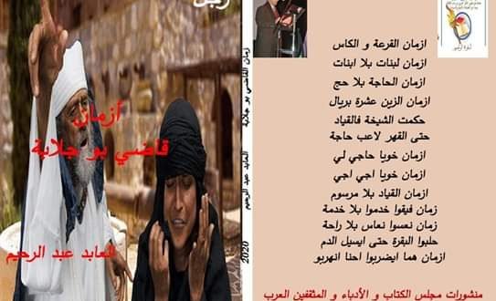 منشورات مجلس الكتاب وادباء والمثقفين العرب نشرت بواسطة: Samya altarabehe في أخبار المجلس 1 يوليو، 2020 0 1,158 زيارة منشورات مجلس الكتاب وادباء والمثقفين العرب قريبا اصدار ديوان زجل للشاعر المغربي الزجال ذ- العابد عبد الرحيم يحمل عنوان ” أزمان قاضي بوجلابة ” امنياتي بالتوفيق لشاعرنا ودوام التالق والازدهار 2020-07-01 Samya altarabehe tweet
