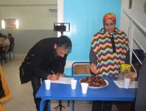أمام ثلة من الشعراء و الشاعرات والجمعويين و طلبة المسرح الذين تدرسهم الأستاذة حنان سككني و الصحافة إلكترونية و عدد من الحضور الكريم بقاعة العرض بدار الشباب الأزهر حيث حل الشريف د.جهاد ابومحفوظ ضيف شرف في هذا الحفل.