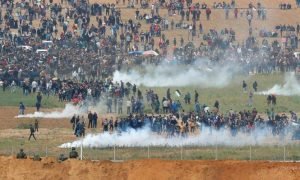 حيث احتشد عشرات الآلاف من الفلسطينيين في قطاع غزة قرب الشريط الحدودي العازل،