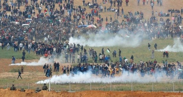 حيث احتشد عشرات الآلاف من الفلسطينيين في قطاع غزة قرب الشريط الحدودي العازل،
