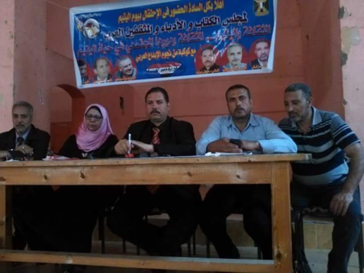 بفضل الله تعالي وبتوفيقه اقام مجلس الكفتاب والادباء والمثقفين العرب برعاية السيد الشريف د.جهاد ابومحفوظ رئيس المجلس الفاضل وبإشراف سعادة الأمين العام للمجلس رئيس فرع مصر د . محمد حسن فرغلي اليوم الاحد الموافق 2016/4/3 لقاء الثقافة ودورها المجتمعي في حياة اليتم بنادي المعلمين بمركز ابو المطامير محافظة البحيرة وبحضور السيد الدكتور الشاعر/ السيد احمد ابراهيم المستشار الثقافي لمجلس الكتاب والشاعره الكبيره/ ميمي عبد الجليل والشاعر الكبير/ محمد مهران والكاتب والاعلامي دكتور/ مصطفي ابو زهرة الامين العام المساعد للمجلس والشاعر السكندري/ يحيي حسن قطوش والشاعر الكبير / محمد محمد الساعي والشاعر/ محمود الدستاوي والشاعر/ احمد صبري والشاعر/ محمد صبري الشاعر/ والشاعر/ احمد الجافل والشاعر/ كريم الحسيني والشاعر/ خيري خلف الله والشاعر/ عصام حسني والشاعر/محمد فوزي الشيخ والشاعر/ محمد سعد سعيد والشاعره الراقيه/ امل فرج والشاعر الكبير/ محمد الحليغي والامير المصري الشاعر/ محمد السيسي والشاعرالبحراوي الكبير/ احمد هلال والشاعر الراقي/ تامر النقيب والشاعره/اسماء علي وقدم الشاعر/ كريم الحسيني والشاعر الراقيه الجندي المجهول/في لقاءات المجلس / امل موسي عمران الشيخ فقرة ترفيهيه مع الاطفال نالت اعجاب الحضور ورسمة بسمة علي وجوه الاطفال