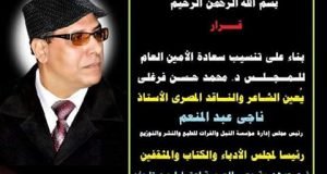 قرار تعين الشاعر والناقد المصري الاستاذ – ناجي عبد المنعم “