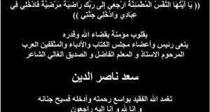 أكمل القراءة »تعزية ومواساة لعضوي مجلس الكتاب المهندس حسين السلاق وزوجته صباح ابو العز